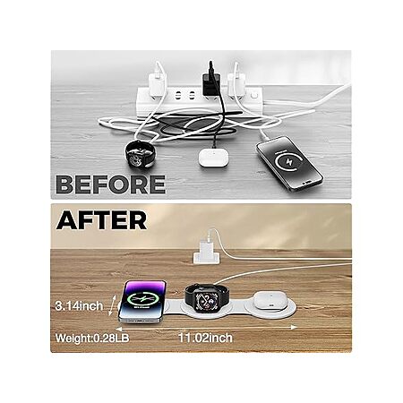 $8.99 | Hicober 18W Wireless 3-in-1 Magnetic Foldable Apple Device Charging Station at Woot!