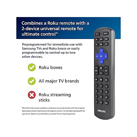 Philips Roku TV Remote Replacement, Compatible with Roku Philips TV, TCL/ONN/Hisense/Sharp/Element/Westinghouse, Roku Replacement Remote SRP6320R/27 $5
