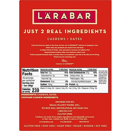 [SnS, AC] $10.03 | 16-Pack 1.7-Oz LÄRABAR Fruit & Nut Bars (Cashew Cookie) at Amazon (62.7¢ each)