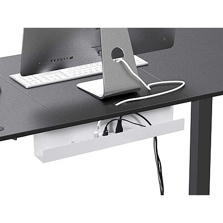 Model: Workstream by Monoprice Under Desk Power Supply and Wire Management Cable Tray Organizer, Steel, White