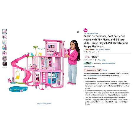 Barbie Dreamhouse, Pool Party Doll House with 75+ Pieces and 3-Story Slide, House Playset, Pet Elevator and Puppy Play Areas $94.79 w/coupon