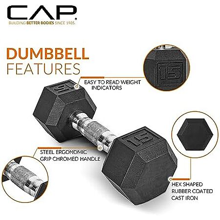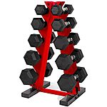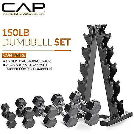 $160.99 | CAP Barbell 150 LB Coated Hex Dumbbell Weight Set with Vertical Rack at Amazon