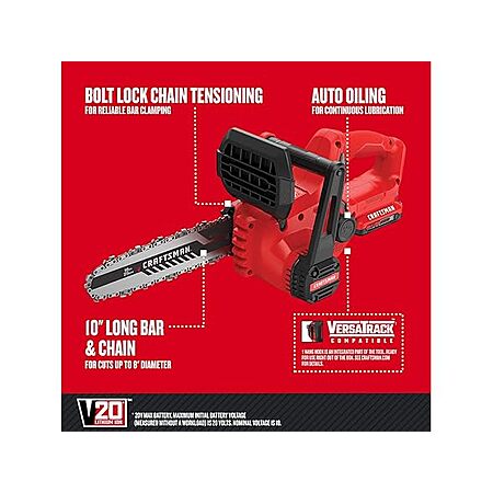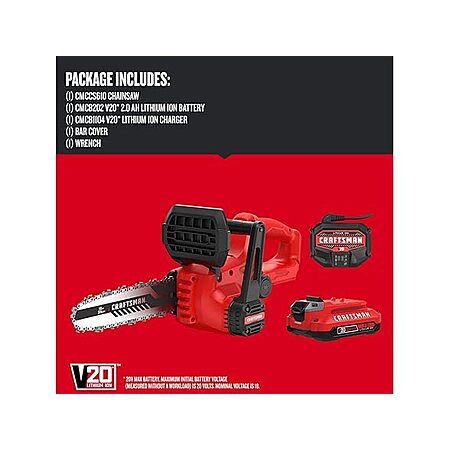 CRAFTSMAN CMCCS610D1 Mini Chainsaw, 10 inch Cordless, Electric Chain Saw, 2Ah V20 Battery and Charger Included $127