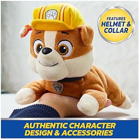 Model: Paw Patrol GUND Rubble Plush, Official Lounging Rubble Plush Toy, Weighted Stuffed Animal, Sensory Toy for Ages 1 and Up, 8”