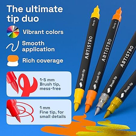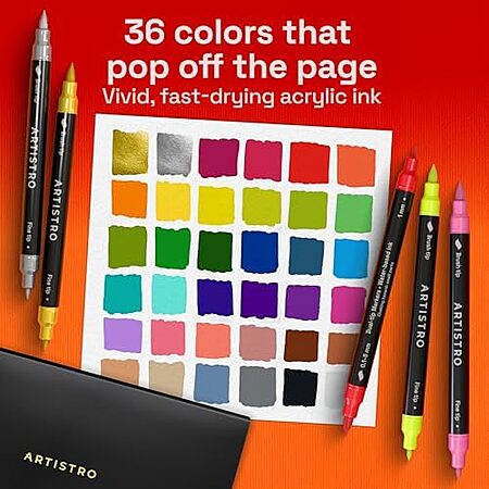 Artistro USA via Amazon[amazon.com] has 36-Pack Artistro Dual-Tip Acrylic Paint Markers (Assorted Colors) for $9.97 - 5% when you check out via Subscribe & Save = $9.47. Shipping is free with Prime or on $35+ orders.