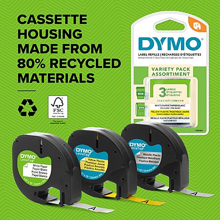 - FSC-CERTIFIED & RECYCLED: LetraTag cassette housing is 80% recycled, all tapes come in FSC-certified packaging, and are BPA-free, complying with legislation