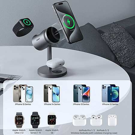 Aukey MagFusion 3-in-1 Wireless Charger with Qi2 Active Cooling on sale for