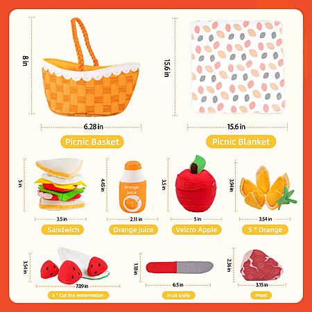 Jollybaby Soft Picnic Basket Plush Cutting Food Toy $12.49 + Free Shipping w/ Prime or on $35+