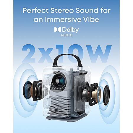 • Flippable Audio Magic: Rotate the dual 10W Dolby Audio speakers 90° side to side or 200° up and down for sound that follows your vibe, perfect for any setup or scene.