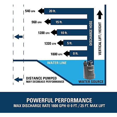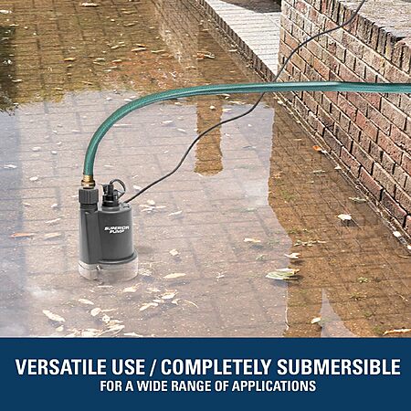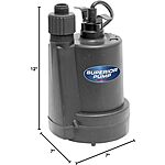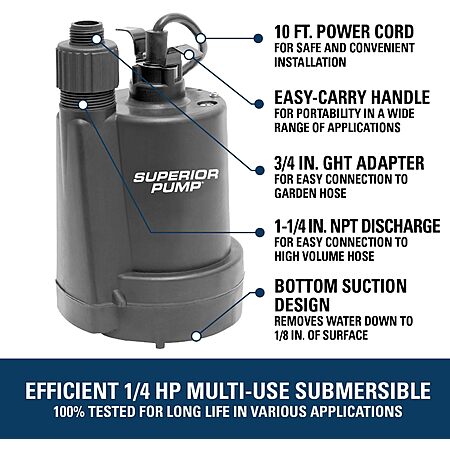 Superior Pump 91250 1800GPH Thermoplastic Submersible Utility Pump with 10-Foot Cord, 1/4 HP $48.59