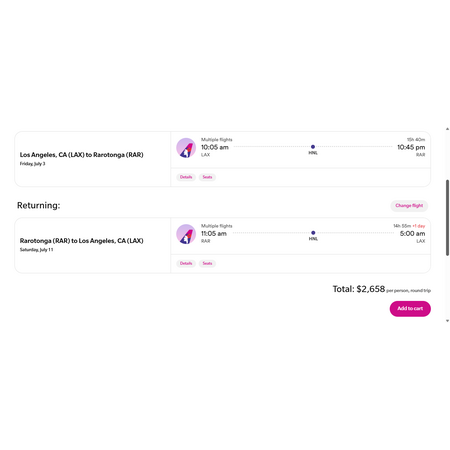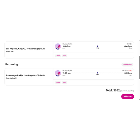 - Economy LAX-RAR July 3-11, 2026 $692 (without code $989)