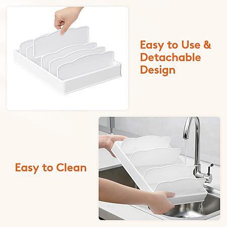 • More Than Just a Lid Organizer: Fits small, medium, large, round, and rectangular lids, as well as bowls, plates, and spice. Store multiple kitchen items in one place, saving cabinet space which replaces the need for separate storage solutions