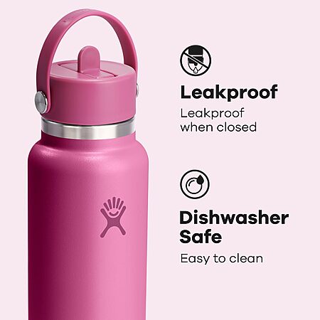 Hydro Flask Water Bottle - Insulated Stainless Steel - Wide Mouth Flex Straw Lid, Non Spill, Leakproof and Refillable in 32 Oz Reef Pink $20.23