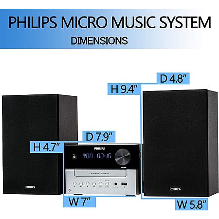JISCO CORP via Amazon has Lightning Deal: Philips 18W Micro Music Sound System w/ Bluetooth & CD Player (TAM3205/37) on sale for $128.23. Shipping is free.
