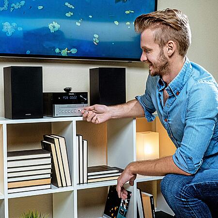 Model: Philips CD Player and Stereo System for Home - Compact Radio and Cassette Tape Player with Bookshelf Speakers, Retro Style Music Player with FM Radio and Remote Control for Crystal Clear Sound