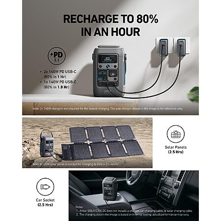 Model: Anker SOLIX C300 DC Power Bank Station, Outdoor 288Wh (90,000mAh), Portable Power Station for Multiple Devices, LiFePO4 Battery, 300W Solar Generator, for Camping, Traveling, and Emergencies
