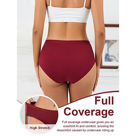 Cuweni Women's Cotton Underwear Full Coverage Soft Briefs Stretch Comfortable Low Rise Breathable Ladies Hipster Panties 6 Pack (US, Alpha, Medium $7.98