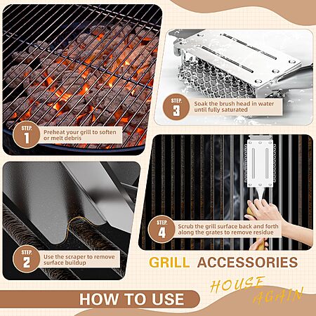 HOUSE AGAIN Grill Brush and Scraper Bristle Free with Dual Grip, 304 Stainless Steel Food-Grade Brush Head $16.99