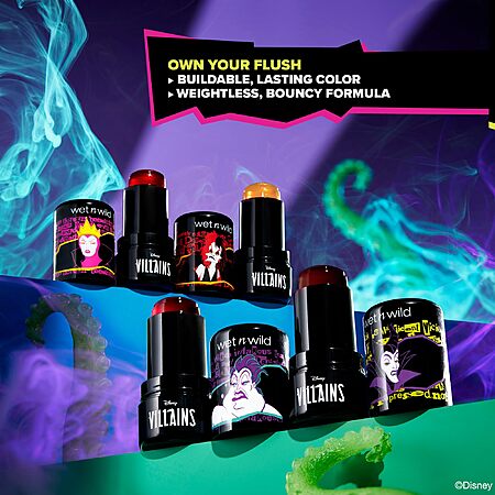 - wet n wild x Disney Villains: Step into the world of Disney's most iconic villains with Wet n Wild's exclusive collection. Inspired by the wicked charm of characters like Maleficent, Ursula, Cruella de Vil, and the Evil Queen, this line brings their fierce spirit and bold energy to your beauty routine. Each product is infused with drama, power, and a hint of mischief. Embrace your inner villain and unleash a look that's daring, unforgettable, and totally legendary.