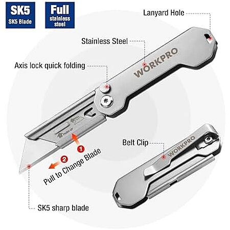 UE Direct via Amazon[amazon.com] has 2-Pack WORKPRO EDC Folding Utility Knife w/ Belt Clip & 10 Blades for $9.98. Shipping is free with Prime or on $35+ orders.