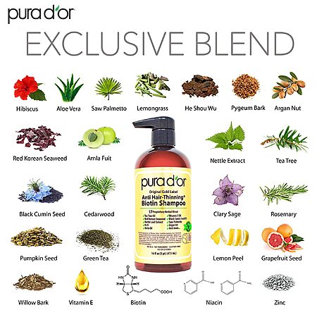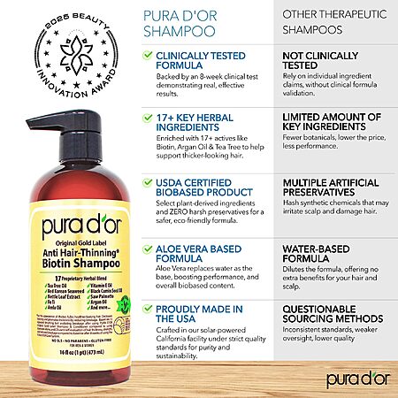 PURA D'OR Anti-Thinning Biotin Shampoo & Conditioner Original Gold Label Set (16oz x2) $27.98