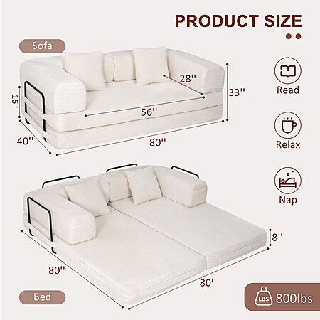 80" Latitude Run Convertible 4-In-1 Sleeper Sofa Bed w/ Removable Armrests (White) $339.99 + Free Shipping