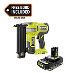 RYOBI introduces the ONE+ 18V 18-Gauge Cordless AirStrike Brad Nailer with 2.0 Ah Battery. This Brad Nailer features AirStrike Technology, which eliminates the need for noisy compressors, bulky hoses, or expensive gas cartridges. This means faster setup and easy maneuverability on the job site. The RYOBI P321 Brad Nailer is capable of sinking up to 2 in. nails in hardwoods. Additionally, it is the lightest cordless brad nailer in its class, which helps prevent user fatigue. This nailer allows for extended periods of continuous work by sinking up to 1,900 nails per charge. It offers a 45% smaller nose for tight spot access and superior drive quality, compared to P320. There is also a tool-free depth of drive adjustment that allows for proper setting of nail heads. Great for window, door and cabinet trim, this Brad Nailer is the perfect addition to any carpenter or DIYer's tool collection. Best of all, it is part of the RYOBI ONE+ System of over 300 Cordless Products that all work on the same battery platform. This tool is backed by the RYOBI 3-Year Manufacturer's Warranty and includes 2 non-marring pads, and 2.0 Ah Battery. Charger sold separately.