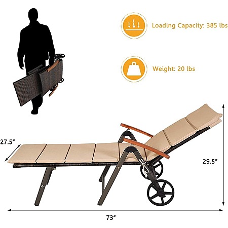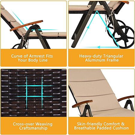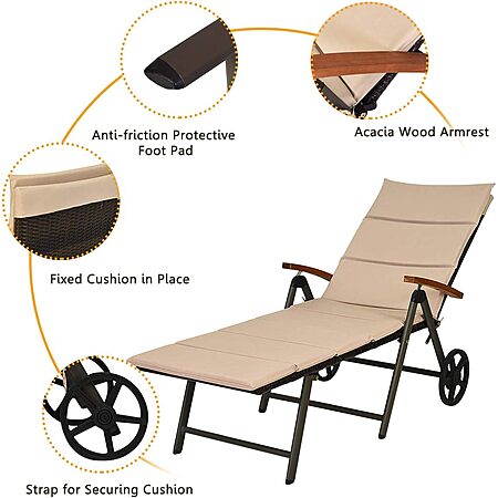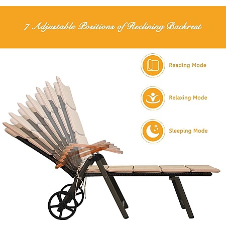 Tangkula 7-Position Adjustable Reclining Pool Rattan Lounge Chair w/ Wheels $57.79 + Free Shipping