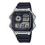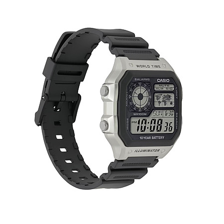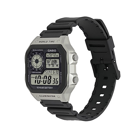 - Additional Features: World Time, Automatic Calendar, Digital Chronograph, Five Daily Alarms, LED Light with Afterglow, Shock-Resistant, Water Resistant to 100 Meters, Japanese Quartz Movement Display