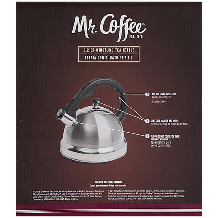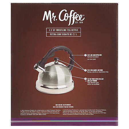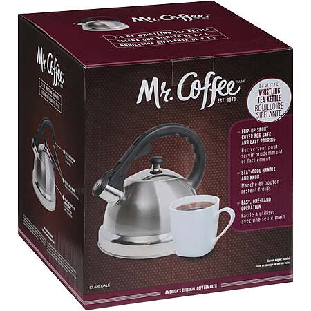 Mr. Coffee Claredale 2.2 Qt Stainless Steel Whistling Tea Kettle in Silver - $12.48