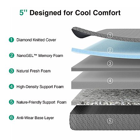 $84.99: Novilla Full Size Mattress, 5 Inch Mattress Full Size Memory Foam with Gel-Infused & Airflow Wave-Cut Foam