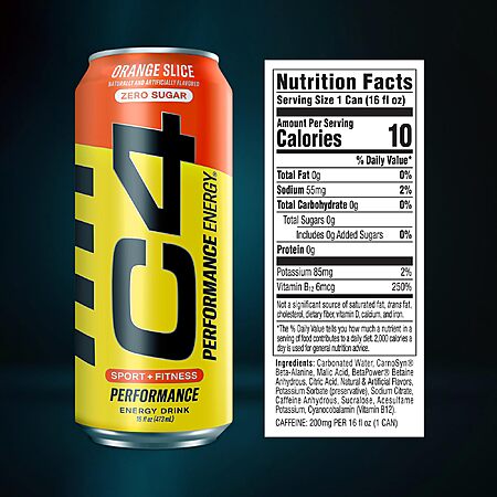 Model: C4 Energy Carbonated Zero Sugar Energy Drink, Pre Workout Drink + Beta Alanine, Orange Slice, 16 Fl Oz (Pack of 12)