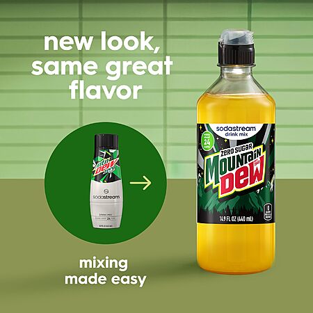- Refresh Your Day with Zero Calories; Enjoy the rich taste of the mountain dew drink mix, a perfect soda stream diet alternative, without any sugar or aspartame; each bottle delivers 36 servings of delightful fizzy refreshment for your soda cravings; ideal for those looking to enjoy a soda experience at home with your soda stream