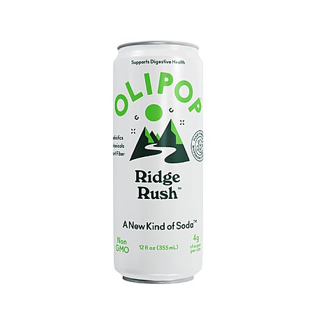 OLIPOP Sparkling Prebiotic Soda, Ridge Rush, Pantry Pack Packed with Prebiotics, Fiber, and Botanicals, Gluten Free, GMO Free, 12oz Skinny Can (12 Pack), 12 Fl Oz (Pack of 12) on sale for