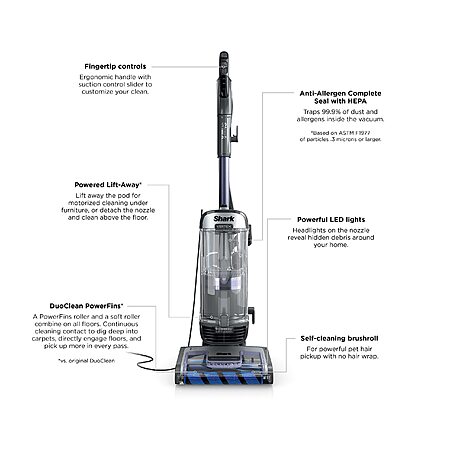 $229.99: Shark AZ2001AMZ Vertex DuoClean PowerFins Upright Vacuum, Powered Lift-Away & Self-Cleaning Brushroll, Dark Lilac