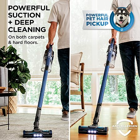 Model: Shark IZ363HT Anti-Allergen Pet Power Cordless Stick Vacuum Self-Cleaning Brusholl, PowerFins, Crevice Tool, Dusting Brush, Pet Multi-Tool & Anti-Allergen Dusting Brush, 50min Runtime, Blue