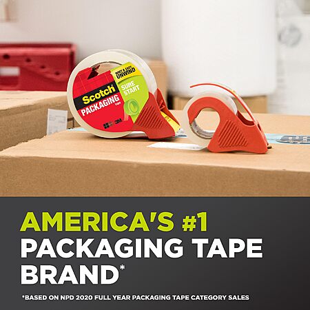 Model: Scotch Sure Start Shipping Packaging Tape, 1.88"x 22.2 yd, Designed for Packing, Shipping and Mailing, Quiet Unwind, No Splitting or Tearing, 1.5" Core, Clear, 6 Dispensered Rolls (145-6)