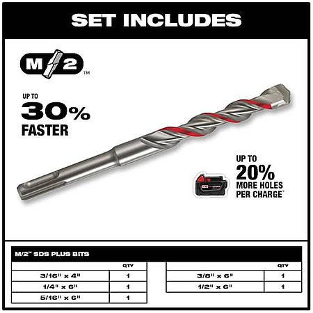10pc Milwaukee 2-Cutter SDS-PLUS Carbide Hammer Drill Bit Set