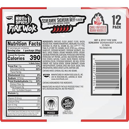 [SnS, AC] $7.09* | 12-pk 3.10-oz Nissin Fire Wok Hot & Spicy Chile Infused Noodles (Screamin Beef) at Amazon