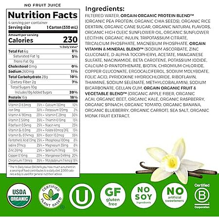 [SnS, AC] $3.96 | 4-Pack 11-Oz Orgain Organic Nutritional Vegan Protein Shake (Vanilla Bean) at Amazon