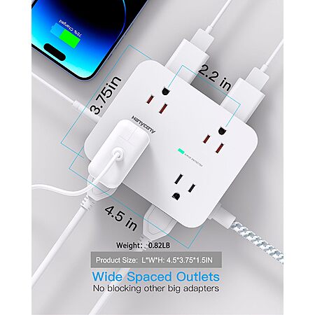 - 【12 IN 1 Power Strip & 2.2 IN Wide Space】- 3-side design power strip surge protector with 8AC widely outlets and 4 USB (2 USB C) charging ports can power up to 12 devices simultaneously. That makes it easier to make the plugs not covering any outlet, and the 2.2 inchces widely spced in between outlets, larger than standard socket, fit big adapters without blocking each other. The compact design saves more space, suitable for the home, office, and college dorm room essentials