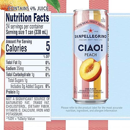 [SnS, AC] $12.65 | 24-Pack 11.15-Oz San Pellegrino CIAO! Sparkling Water (Peach) at Amazon