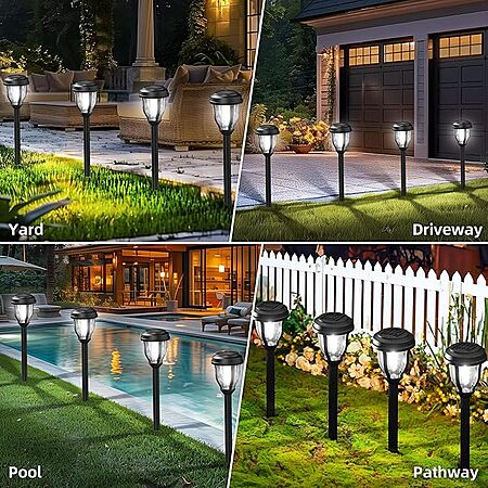 DERAYSION 12 Pack Solar Lights Outdoor, Solar Pathway Lights, Warm light $32) (Cool color light $33