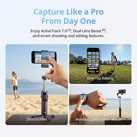 DJI Osmo Mobile 8 Advanced Tracking Combo Gimbal Stabilizer for Phone, AI Native Tracking with Audio & Lighting, 360° Pan Rotation $126