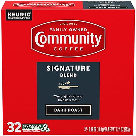 32-Count Community Coffee Dark Roast Single Serve Keurig K-Cup Pods (Signature Blend) for $18.65 -