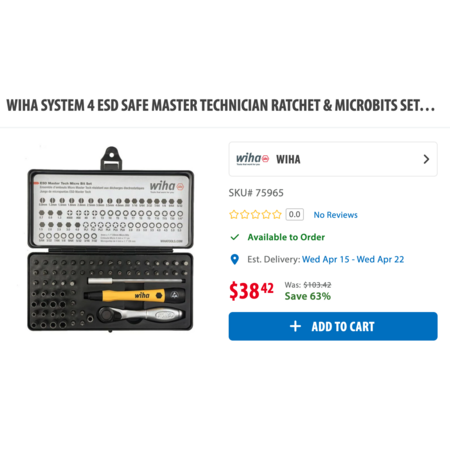 Wiha System 4 ESD Safe Master Technician Ratchet & MicroBits Set, 65 Pieces
