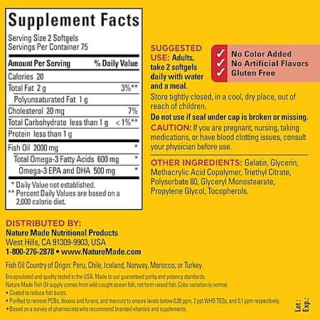 [SnS, AC] $10.72 | 2 × 150-Count Nature Made Burp Less Fish Oil Omega 3 Supplements, 1000mg Softgels ($5.37 each) at Amazon