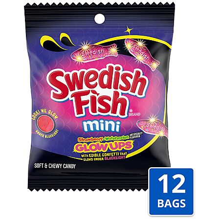 12-Count 3.08-Oz Swedish Fish Mini Glow Ups Soft & Chewy Gummy Candy (Strawberry-Watermelon) $5.52 w/ S&S + Free Shipping w/ Prime or on $35+