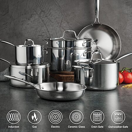 Amazon.com has Tramontina Signature Tri-Ply Clad Stainless Steel 11-Piece Cookware Set with Lids, Pots and Pans Kitchen Set, Induction-Ready, Dishwasher-Safe, NSF-Certified on sale for $188. Shipping is free.