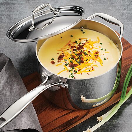 • Tri-Ply Clad Construction: Features an aluminum core for even heat distribution and precise cooking control